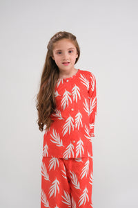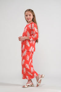 Enjoy all-day comfort in this beautifully relaxed coral-toned outfit with white leaf prints. The soft fabric drapes effortlessly, making it ideal for leisurely days out or casual gatherings while keeping you stylishly at ease all day long.