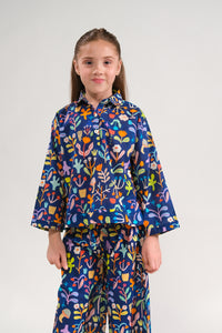 Cozy and chic, this deep navy floral printed set features vibrant flowers and long sleeves for a stylish silhouette. Perfect for evening events or casual get-togethers, its comfortable fit ensures you look great while feeling relaxed.
