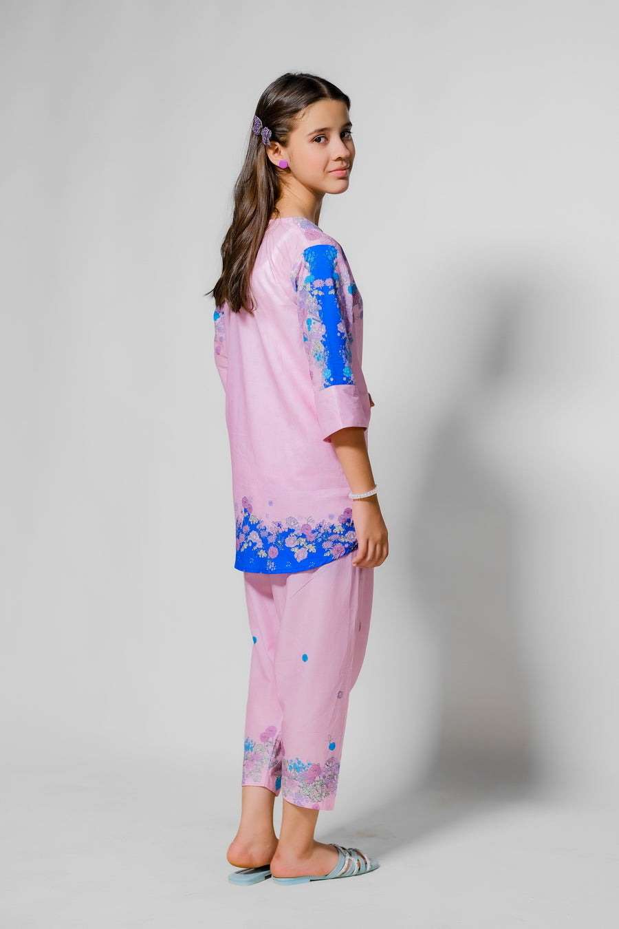 Capture the delicate beauty of Kyoto’s cherry blossoms with the Kyoto Bloom outfit. The soft pink top, decorated with elegant floral designs, is paired with comfortable pink trousers, evoking the serene gardens and springtime charm of this historic Japanese city.