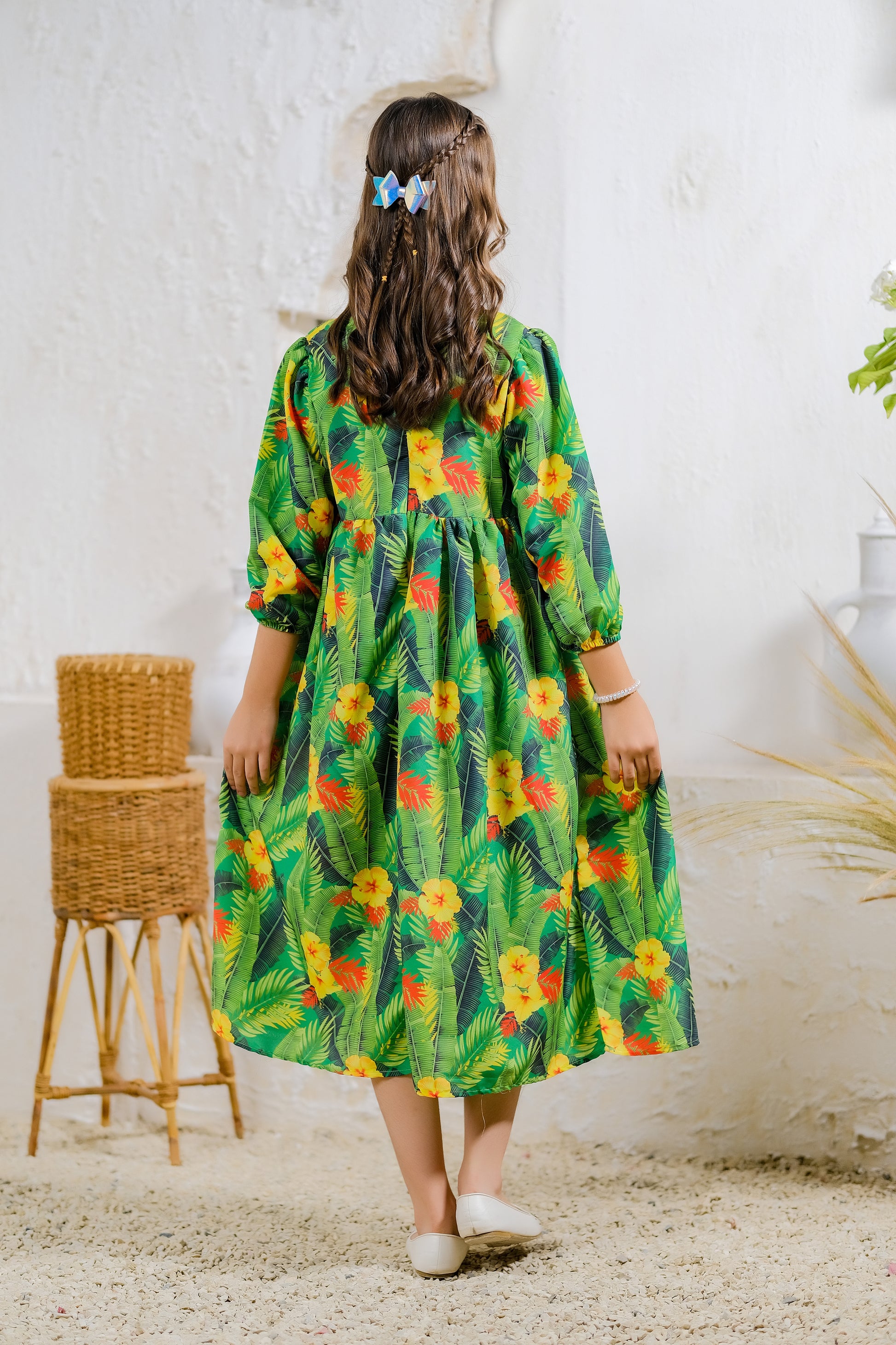 Take a trip to the tropics with the Tropical Paradise tunic. Featuring lush green leaves and bright yellow flowers, this outfit brings the warmth of a tropical escape right into your child’s wardrobe.