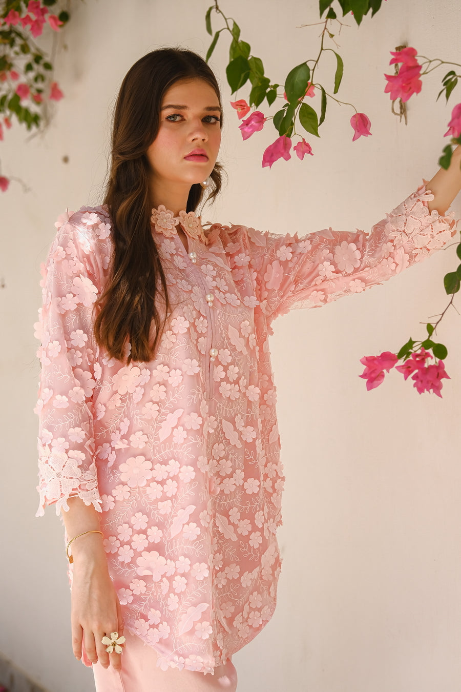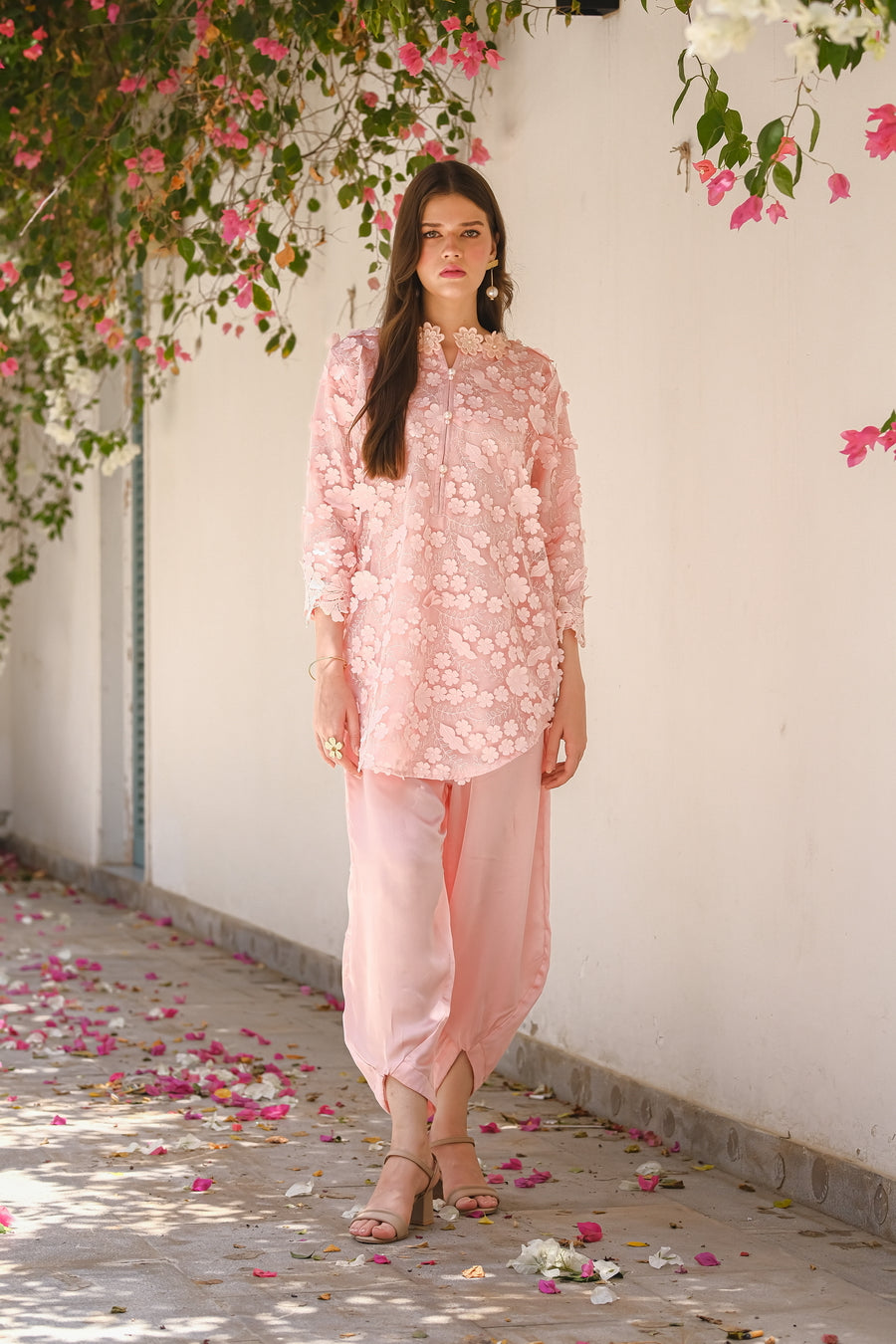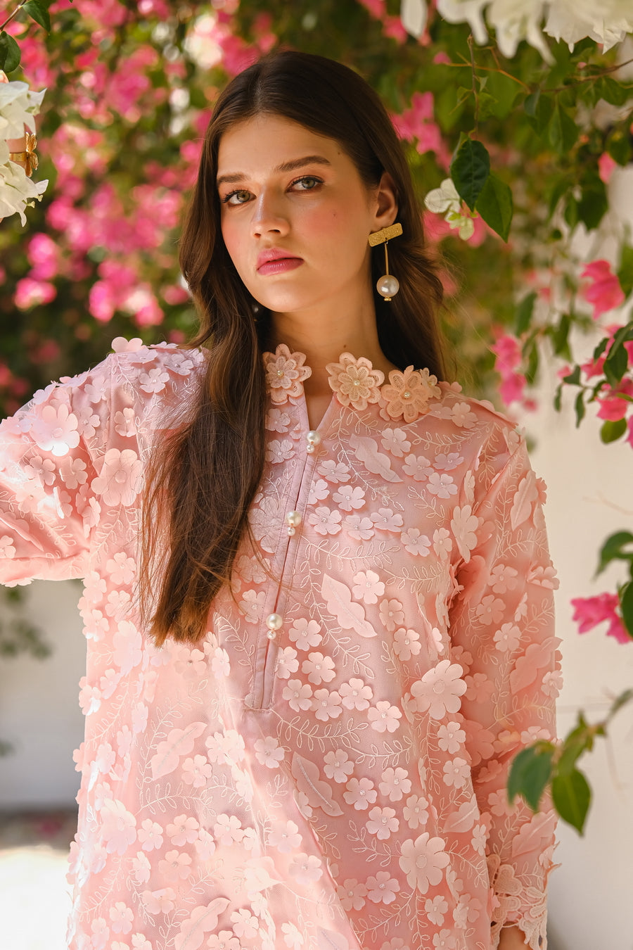 Unveil your inner enchantress with the Garden Grace 3D Flower Dress, a true masterpiece of elegance and femininity. This captivating dress features an exquisite overlay of delicate net adorned with hand-sewn 3D flowers, creating a stunning, garden-inspired aesthetic. The intricate floral details bring a touch of nature's beauty to life, making every movement a mesmerizing spectacle. Underneath the enchanting net, a sumptuous full silk lining ensures a luxurious feel against your skin, offering both comfort and sophistication. Perfect for weddings, garden parties, or any special occasion, the Garden Grace 3D Flower Dress is designed to make you feel like the epitome of grace and charm. Embrace the magic of blooming flowers and let your beauty shine in this unforgettable dress.