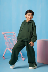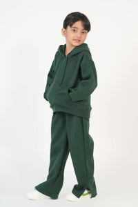 Hoodie With Slit Open Flared Pants - Dark Green