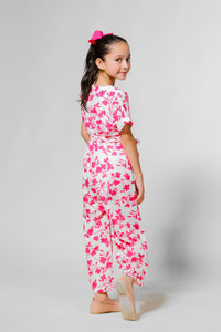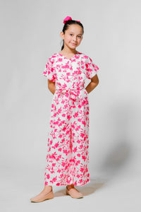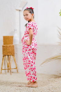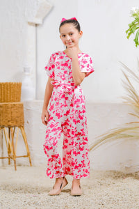 The Pink Petals Jumpsuit is a delightful mix of soft pinks and bold floral patterns. Designed with a cinched waist and comfortable fabric, this jumpsuit is perfect for any occasion, ensuring your little one looks as sweet as a spring bloom.