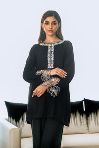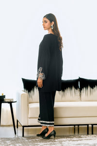 Step into timeless sophistication with our Noir Elegance Embroidered Set. This exquisite two-piece black dress is a masterpiece of style and craftsmanship, designed to make you stand out at any event.