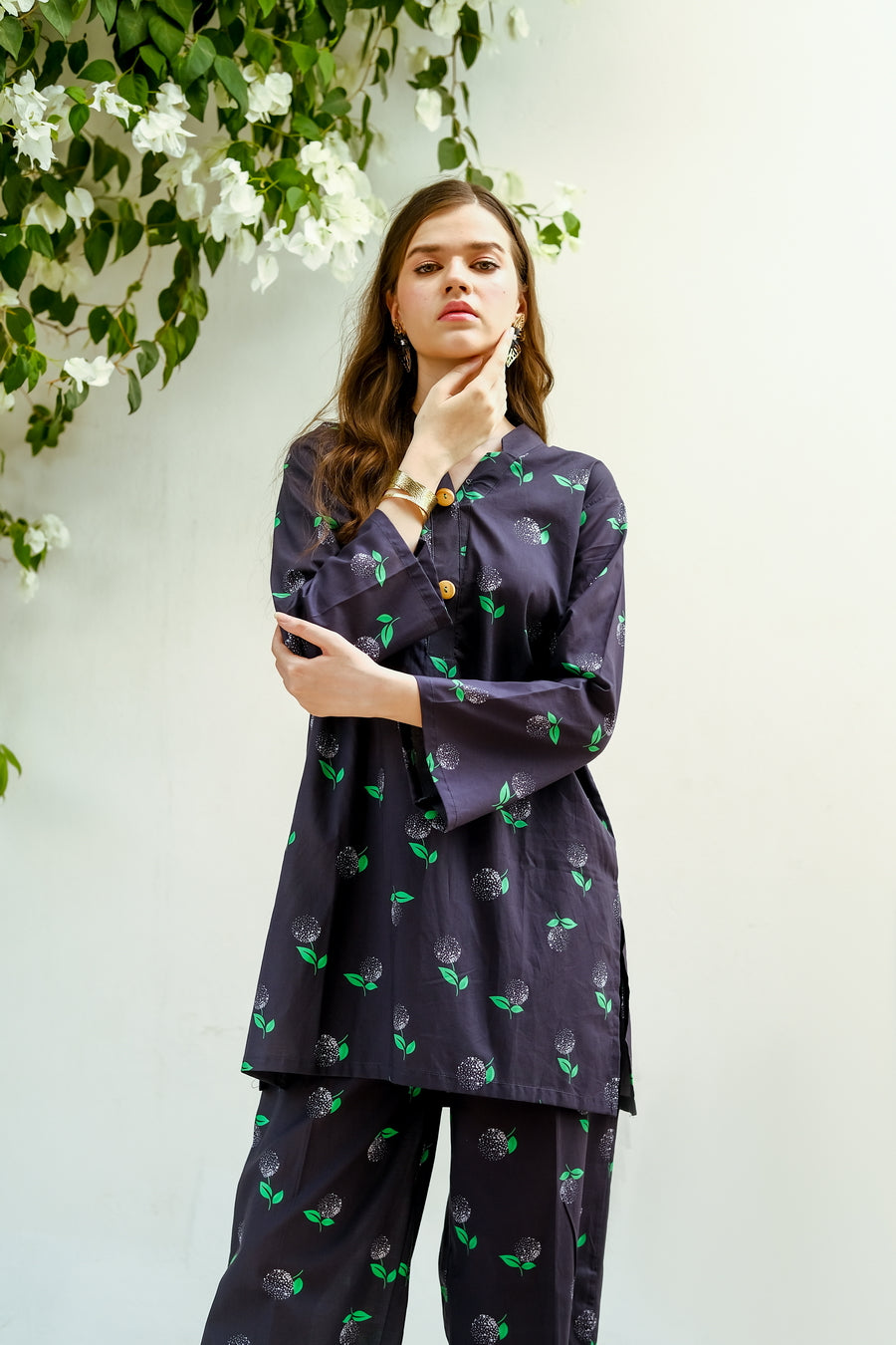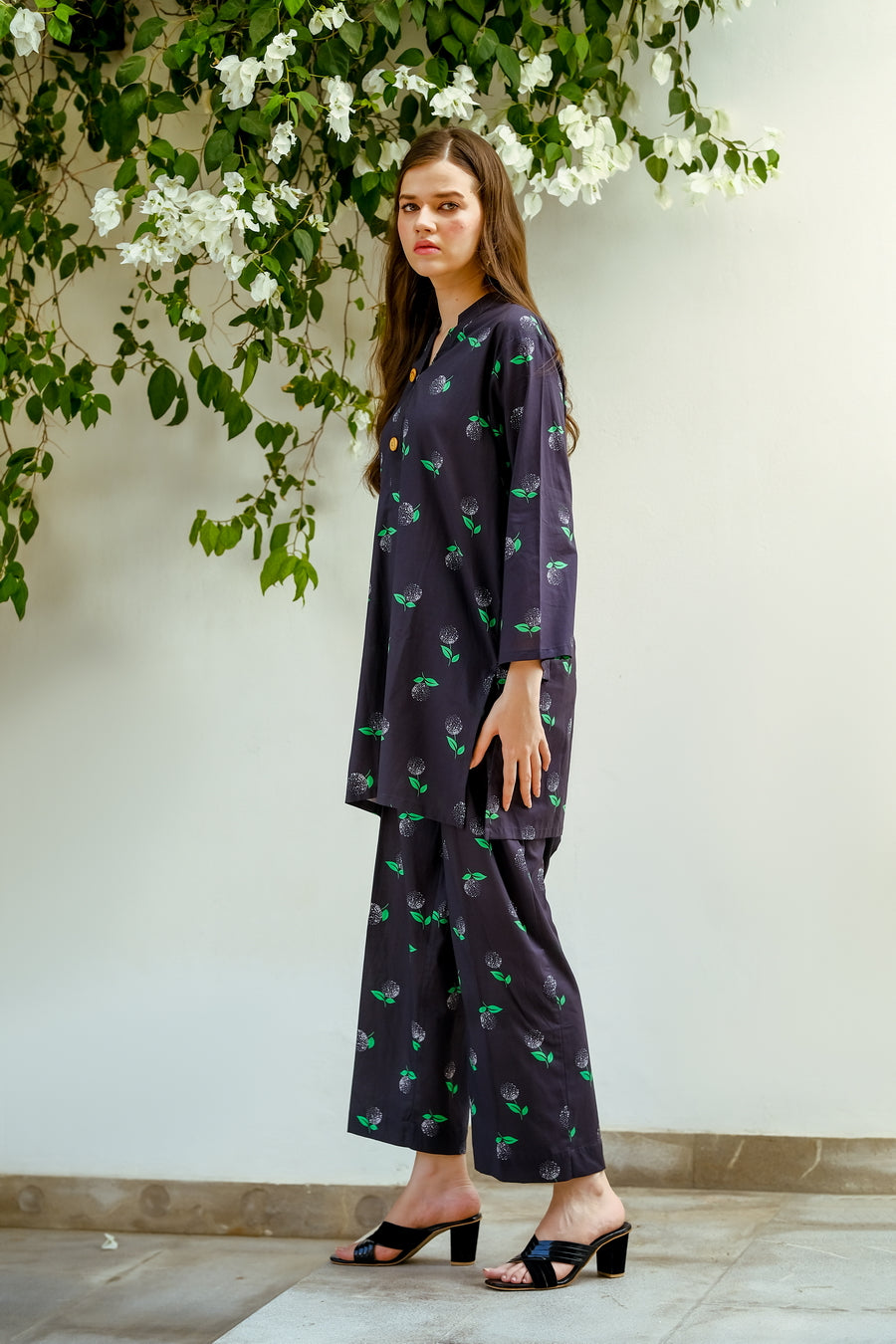 Introducing the FruityBlack, a chic two-piece cotton lawn outfit designed for summer comfort and style. The set features a breathable, lightweight fabric perfect for warm weather. The standout feature is the elegant black fabric adorned with a playful white fruit print, adding a touch of whimsy to your summer wardrobe. Perfect for women who love combining comfort with unique style, the FruityBlack is a must-have for the season.