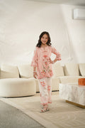 Soft light pink tunic with delicate floral embroidery in red, green, and white. Finished with gentle tassels and pastel flower accents for a romantic, feminine touch